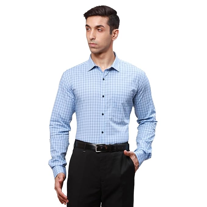 Park AvenuePark Avenue Men’s Pure Cotton Checks Pattern Slim Fit Semi Cutaway Collar Full Sleeve Formal Shirt